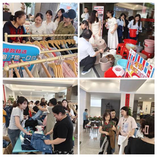 8月22日,競賽活動在廣德大廈大堂率先拉開帷幕,匯聚了利工民毛巾、汗背、家居服、冰大師保溫箱、珠江牌塑料制品、牛仔褲等優(yōu)質(zhì)產(chǎn)品。新員工們分為四支隊(duì)伍,紛紛當(dāng)起了產(chǎn)品推銷員,各自選擇特色紡織產(chǎn)品進(jìn)行展示銷售和品牌推廣?,F(xiàn)場,各隊(duì)精心策劃了優(yōu)惠折扣、互動游戲等豐富多彩的活動,吸引了大量街坊駐足參與購買,一派熱鬧非凡的景象。