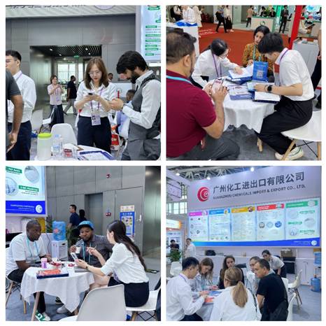 本屆廣交會,化工產(chǎn)品展位依然保持主通道地理優(yōu)勢,除常態(tài)化綠色布展以外,紡織公司與化工公司首次以統(tǒng)一風(fēng)格進(jìn)行連片布展,以全新的聯(lián)合參展方式向全球客商展現(xiàn)創(chuàng)新專業(yè)的企業(yè)形象。把握綠色低碳產(chǎn)品市場的廣闊機(jī)遇,化工公司堅持采用低碳生產(chǎn)工藝的新產(chǎn)品、新成果,展出以高效清潔、環(huán)保安全為亮點的日化洗滌、水處理、陶瓷化學(xué)系列產(chǎn)品;展會現(xiàn)場設(shè)置互動體驗區(qū),運(yùn)用數(shù)字移動屏動態(tài)展示產(chǎn)品使用場景,開展首日即吸引了大量客商駐足,與參展團(tuán)隊進(jìn)行深度接洽,為開拓新渠道、發(fā)展新市場奠定了良好的開端。